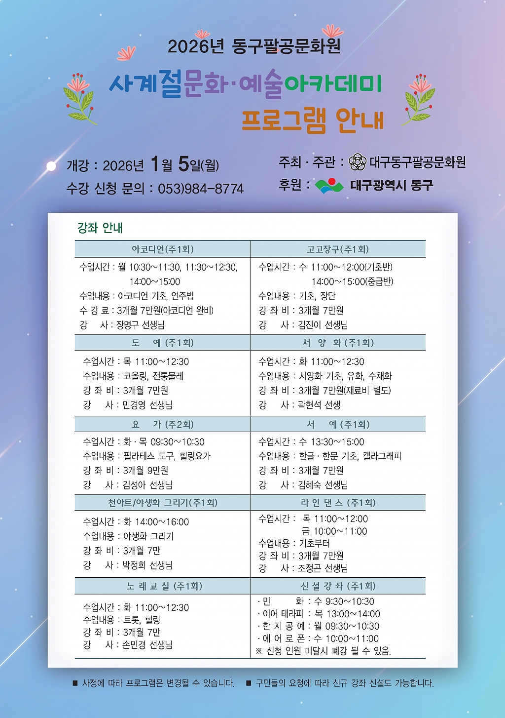 2026년 사계절 문화.예술 아..